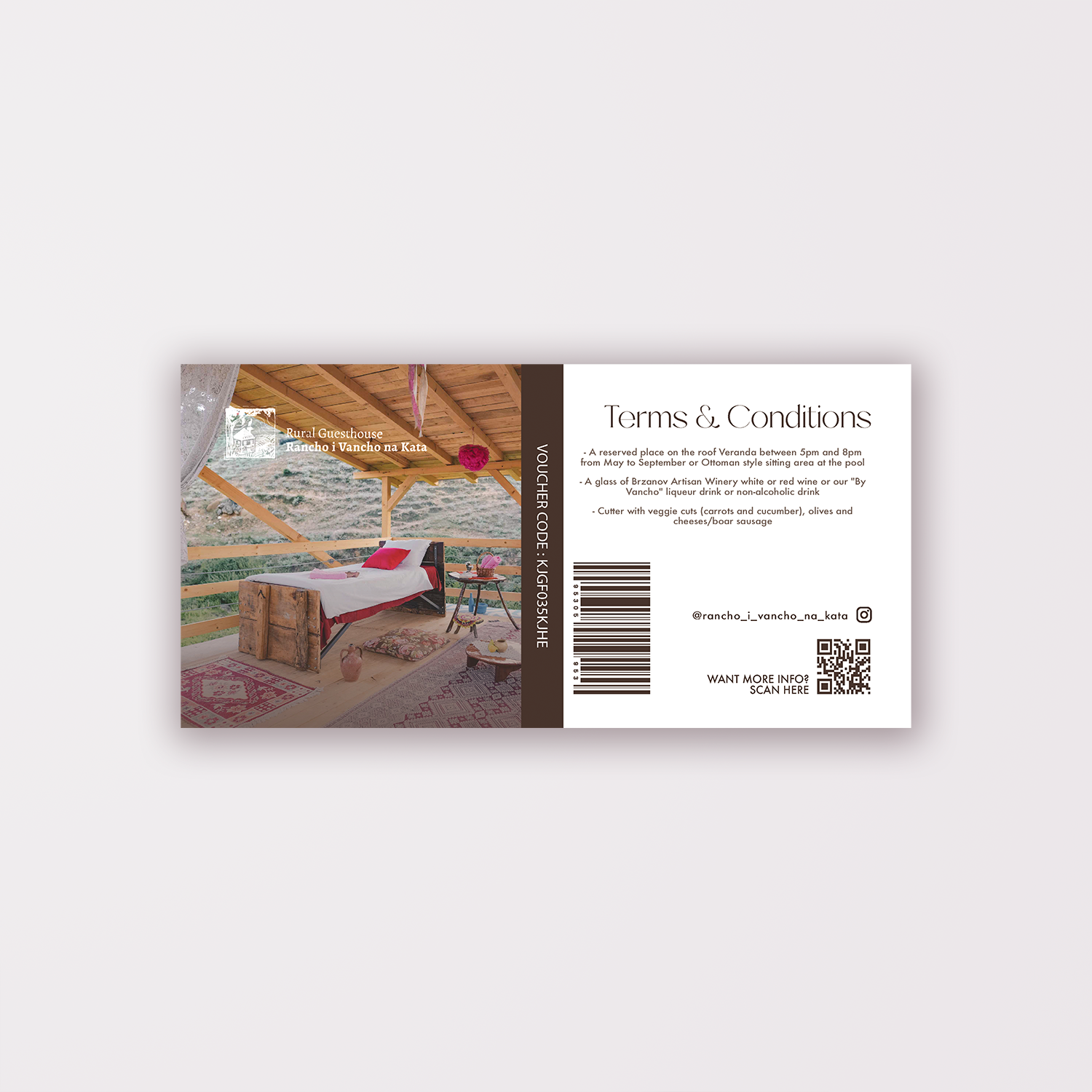 – A glass of Brzanov Artisan Winery white or red wine or our “By Vancho” liqueur drink or non-alcoholic drink
