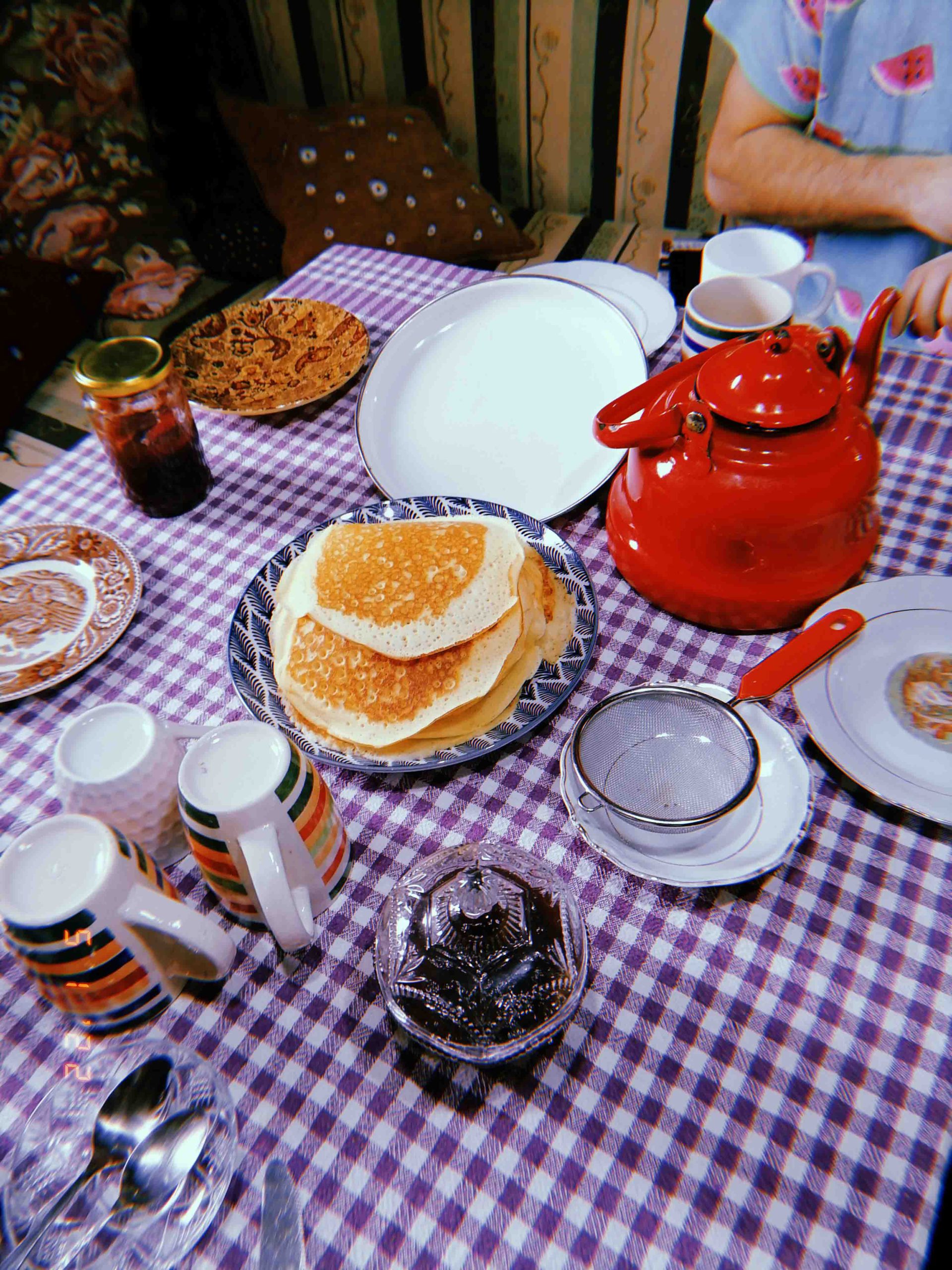 Butter and jams made by the recipes of our mothers, white pure cheese from the nearby farmers, olives and cucumbers. The final touch is some local desert with a cup of coffee or herbal tea.