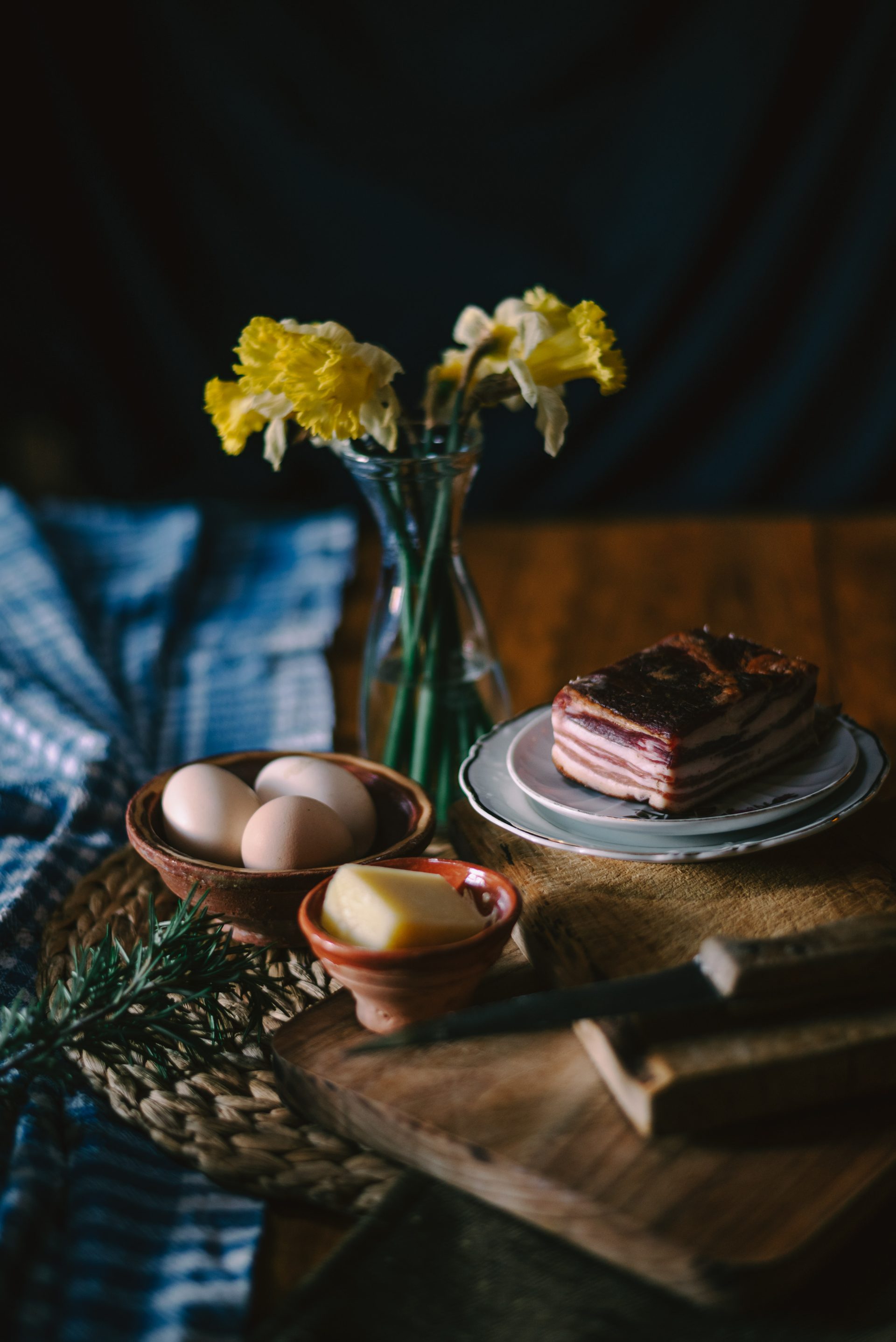 Scrambled eggs with green peppers or leek, depending on the season combined with tasty bread and butter. The next day the menu will offer warm sandwiches with mushrooms topped with cheese and boiled eggs.