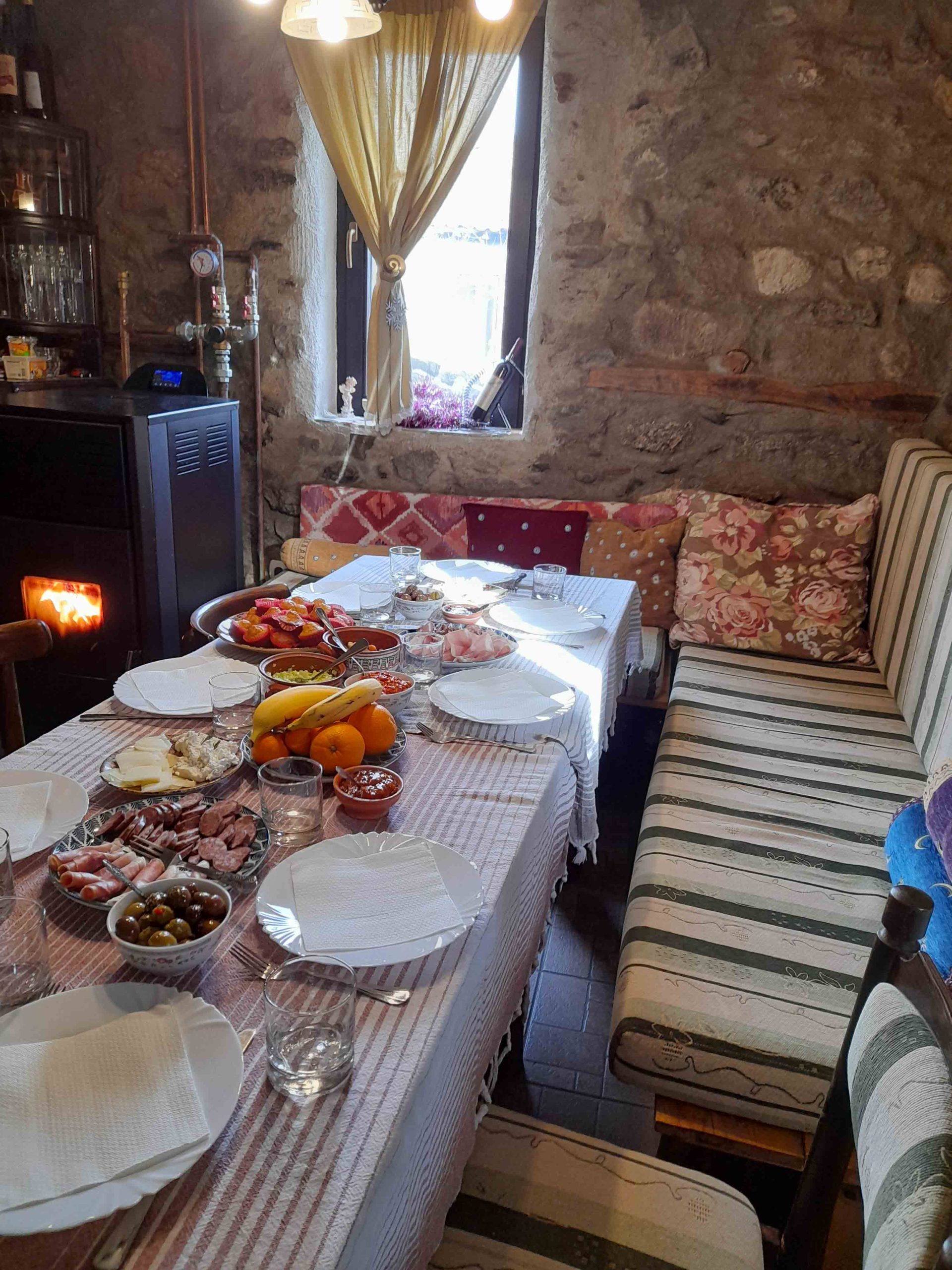 The Living Space is inside the Guesthouse, welcoming the guests on the ground floor. The charming atmosphere is a skillful mixture of history and innovation, offering possibility to directly oversee the cooking of the owners in the kitchen space, while guests are dining breakfast and dinner during chilly days.